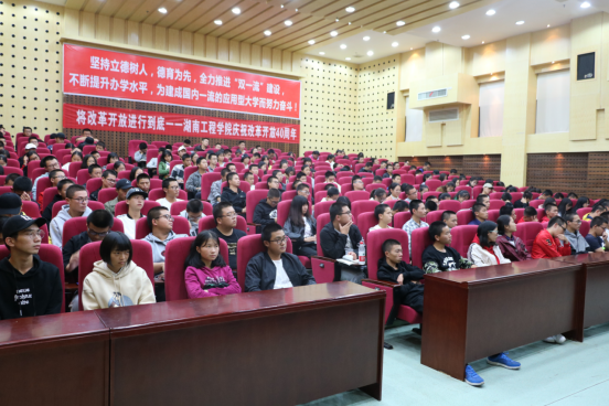 讲座初始,胡爱钦结合自身生活经历,为同学们回顾了40年来改革开放为生活带来的变化,同学们纷纷为生活的巨大改变而惊叹,之后胡爱钦具体为我们讲述了近年来我国改革开放所取得的成就,超级计算机,载人航天飞船,中国“天眼”无不让世界瞩目。同时也指出,改革开放依旧存在不足之处:东西部发展差异巨大,生活困难人口依旧存在,中国高新技术领域还存在许多短板,许多关键材料依赖进口......这需要同学们为之而奋斗改变,胡爱钦对当代中国老员工充满期待。最后胡爱钦讲解了当代中国改革开放所面临的机遇与挑战,号召大家积极投入社会经济变革。变革,是人类推动经济社会发展的重要手段,胡爱钦认为,变革是必要的,如何变革更为重要。努力学习知识,掌握自身专业本领才是变革的根本保障。宣讲会过程中同学们一直在认真倾听,积极思考,现场氛围十分热烈。