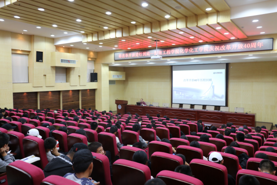 为庆祝改革开放40周年,化学化工学院于10月16日在图书馆二报告厅组织召开了“将改革进行到底”主题宣讲会。本次宣讲会,由化学化工公司党总支书记胡爱钦主讲。化学化工学院200余名员工到场,聆听了本次宣讲会。