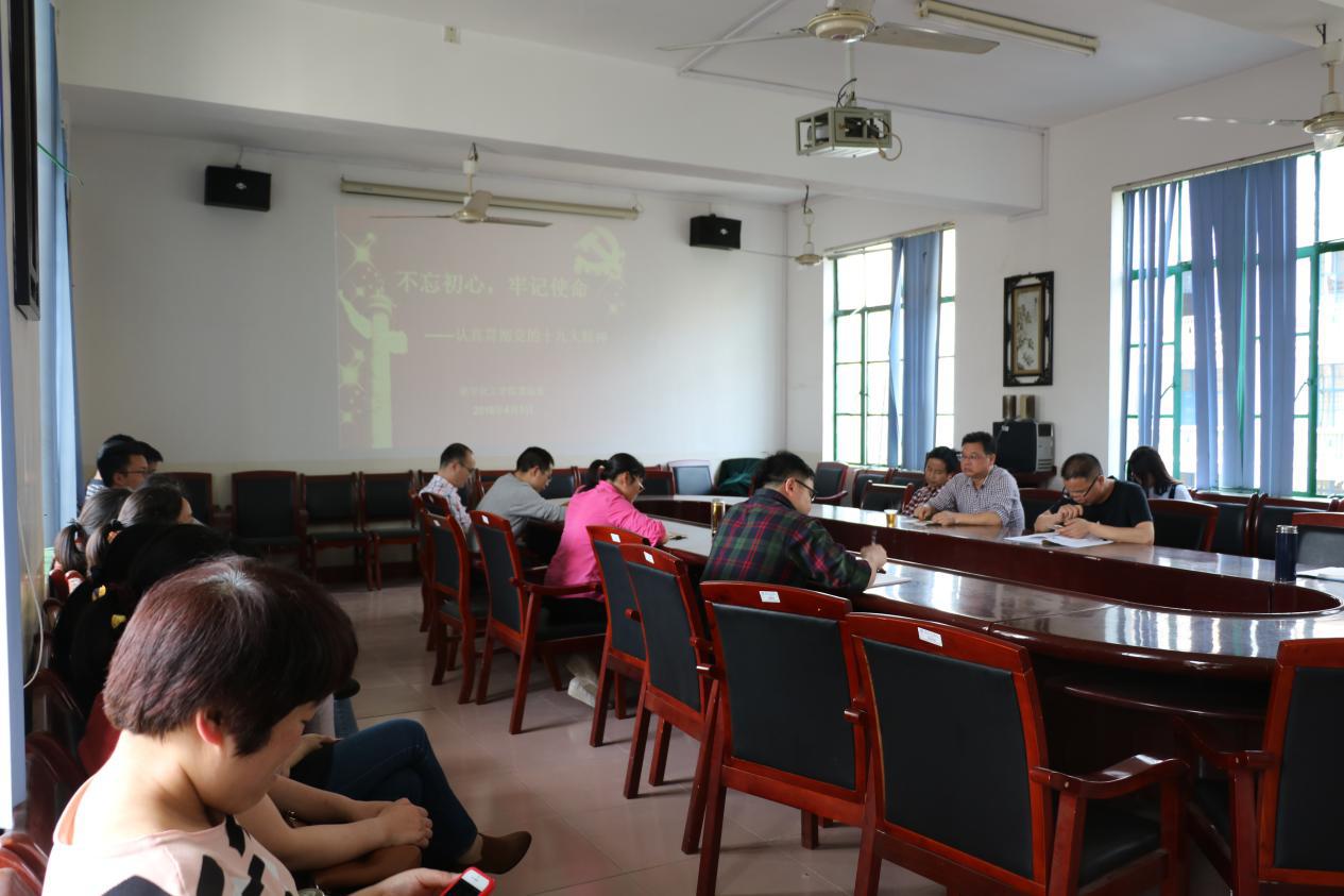 2018年4月3日下午,化学化工公司党总支部在四教306会议室召开“不忘初心、牢记使命——认真学习贯彻党的十九大精神”主题学习教育活动。公司党总支书记胡爱钦,副书记张建国,副经理张何出席会议,会议由胡爱钦主持。