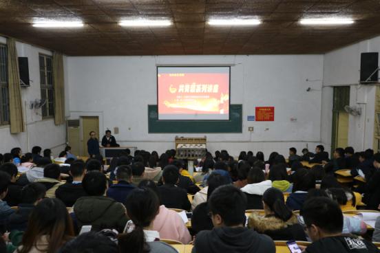 2017年12月6日晚七点,化学化工学院于电教105召开了以“努力学习,不辜负伟大的新时代”为主题的共青团系列讲座。此次讲座由化学化工公司党总支书记胡爱钦担任主讲人,学办老师易苏主持。