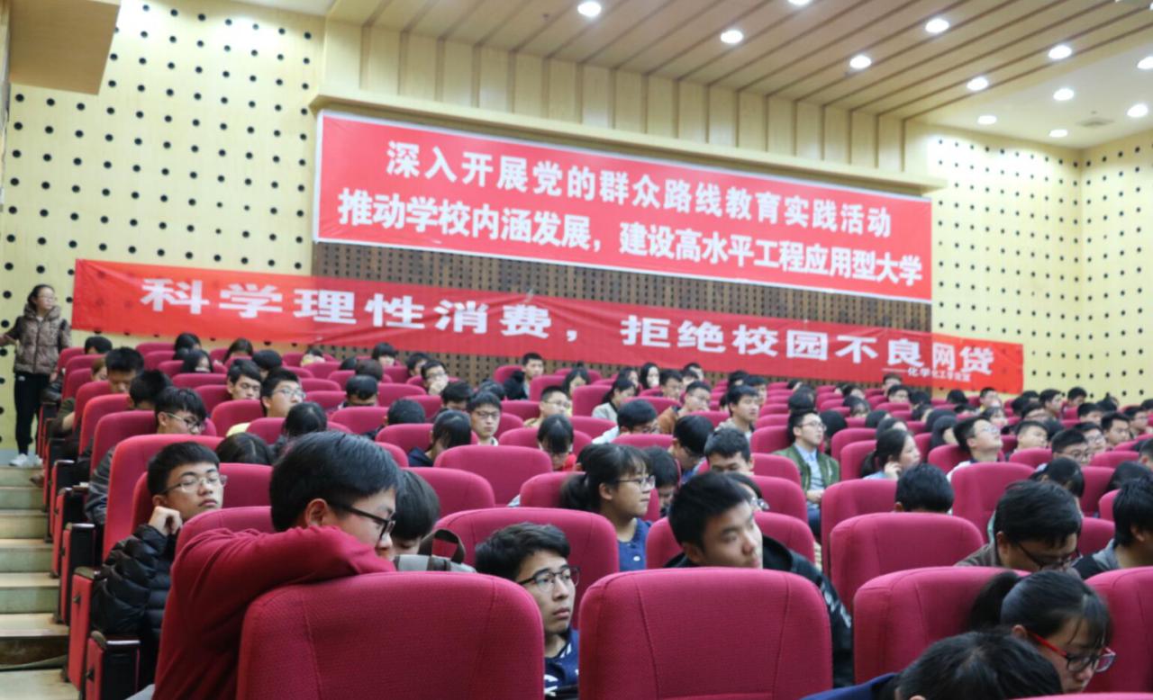 2017年3月30日晚7点,化学化工学院于图书馆二报告厅成功举办了“抵制不良校园贷”主题讲座。其中,化学化工学院学办主任吴菲、学办老师李娥君出席了本次讲座。化学化工学院大一、大二以及大三的部分员工代表到场聆听。公司特邀保卫处陈景轩老师担任本次讲座的主讲人。