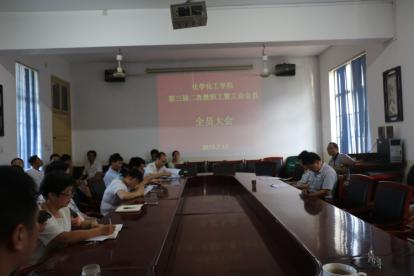 7月15日,在上级领导的精心指导下、在公司党委的亲切关怀下,经过一个多月的认真筹备,化学化工学院第三届第二次教职工暨工会会员大会在4教306会议室召开。化工学院全体院领导出席,55名正式代表参加会议。会议由化学化工公司党总支书记、分工会主席胡爱钦主持。
