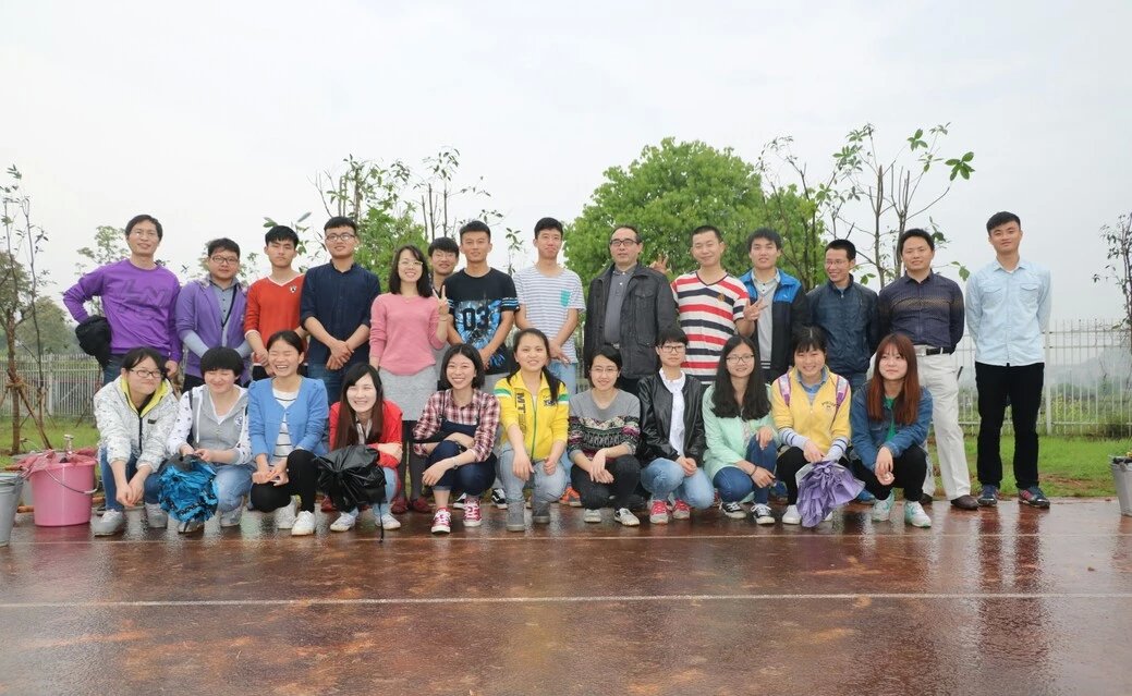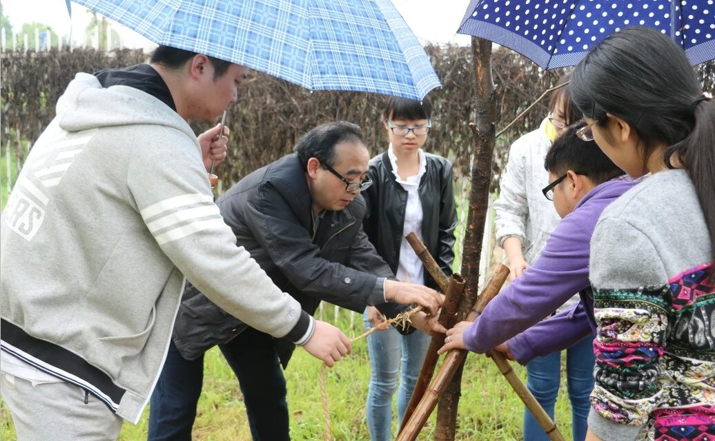 当天下午细雨绵绵,但细雨丝毫没有浇灭大家的热情。胡爱钦带领大家前往指定地点,大家都干劲十足,一开始便领取自己的植树工具。在老师们的带领下,同学们开始分工合作植树。有的手持铁锹,干劲十足,有的扶稳树苗将一棵棵充满生机和希望的树苗植入土中。植树党员们不顾细雨已经打湿面颊,努力地完成着属于自己的工作。大家那份对绿色的痴情,令人动容。