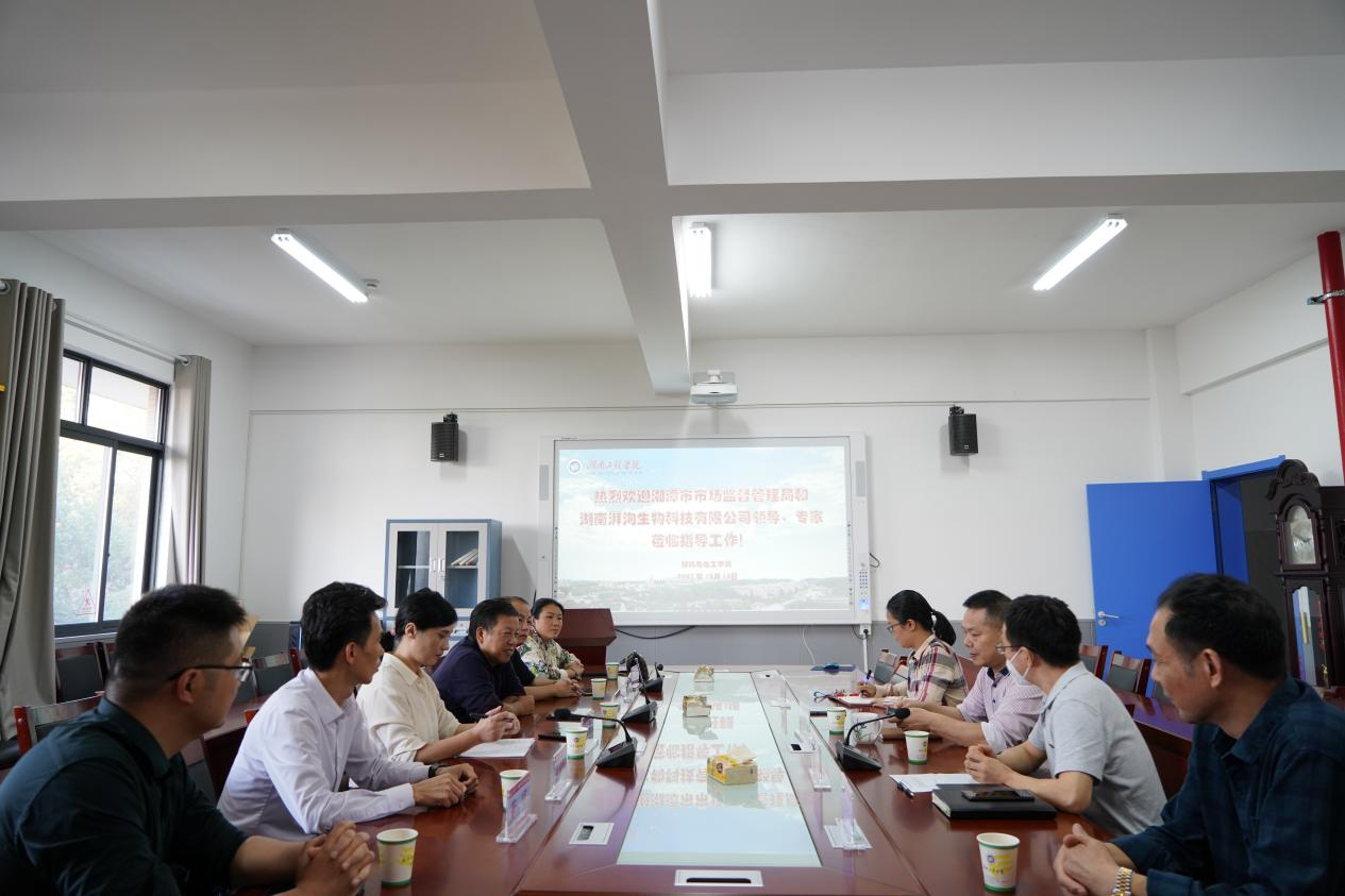 为推动科技引领企业,寻求校企合作共赢,共谋发展的良好局面,10月18日下午,湘潭市市场监督管理局化妆品管理科科长谭静,湖南湃洵生物科技有限公司总经理陈富军、研发总监董明一行来公司开展校企合作交流。学院经理邓继勇、书记严明、副经理张儒、高级实验师王焕龙参加座谈。